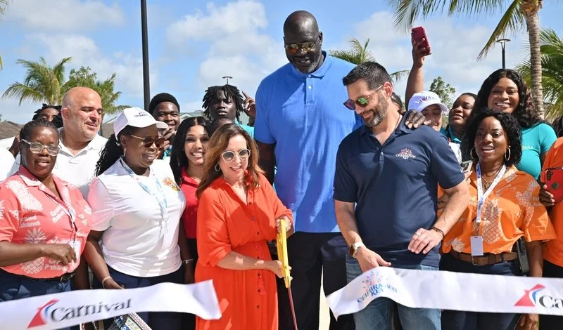 Carnival Cruise Line President Christine Duffy, Carnival Corporation CEO Josh Weinstein, Chief Fun Officer Shaquille O’Neal and Carnival Vista Captain Paolo Severini turned the key that “unlocked” the gates to the iconic 10-story Suncastle, home to two thrilling racing waterslides. They also cut the ribbon to open Lokono Cove, the shopping village; and O’Neal made the first shot at the basketball court; followed by a champagne toast at Pearl Cove Beach Club, an adults-only retreat. The ceremony was livestreamed and can be watched here.