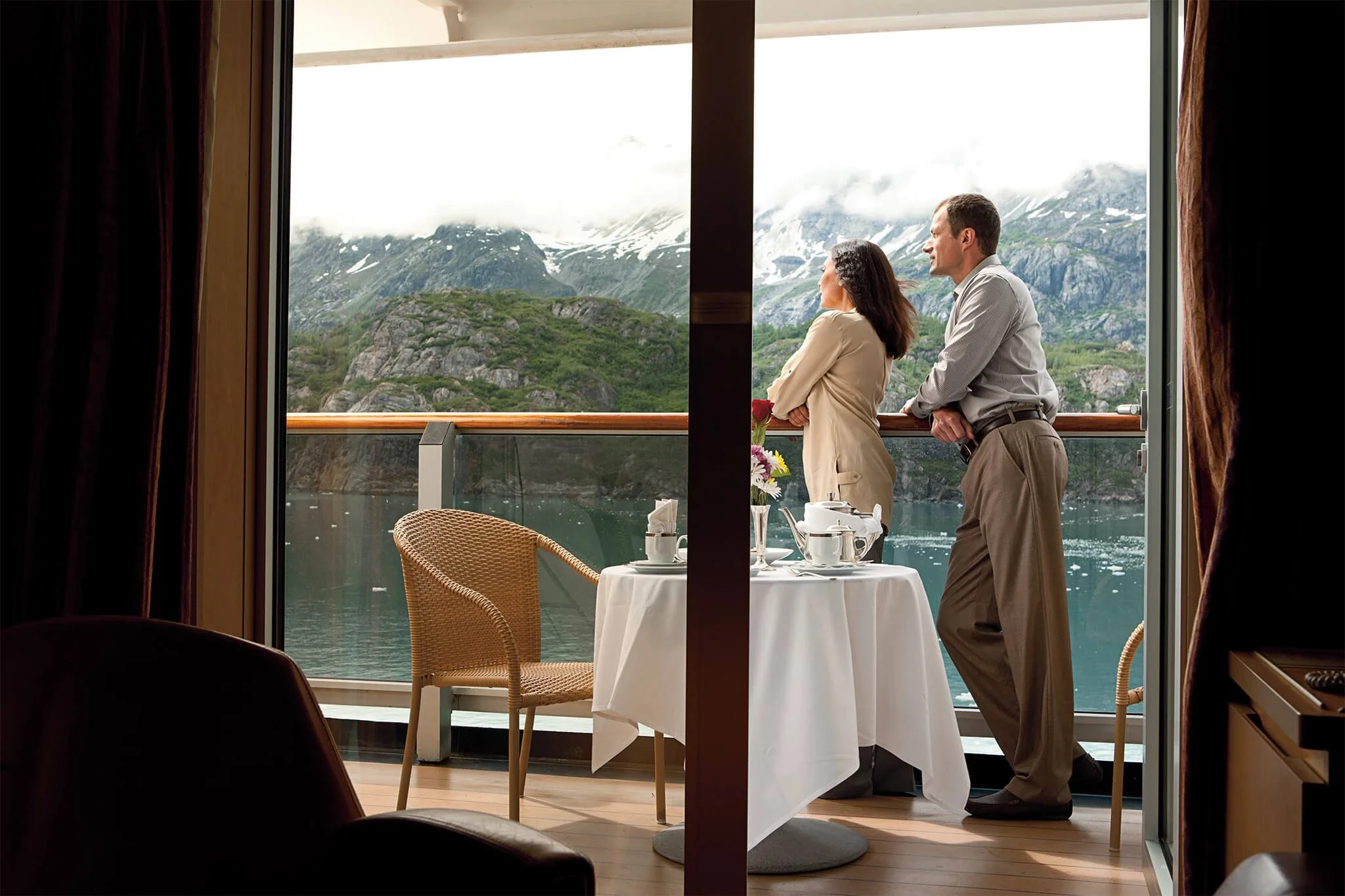 Couple on HAL balcony. (Image courtesy of Holland America Line.)