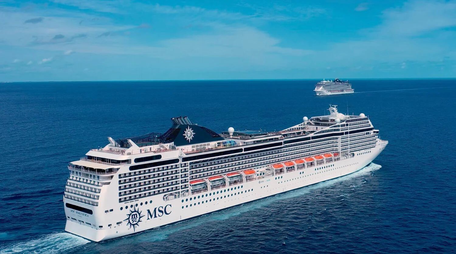 MSC Magnifica and MSC Seashore at sea. (Image courtesy of MSC Cruises)