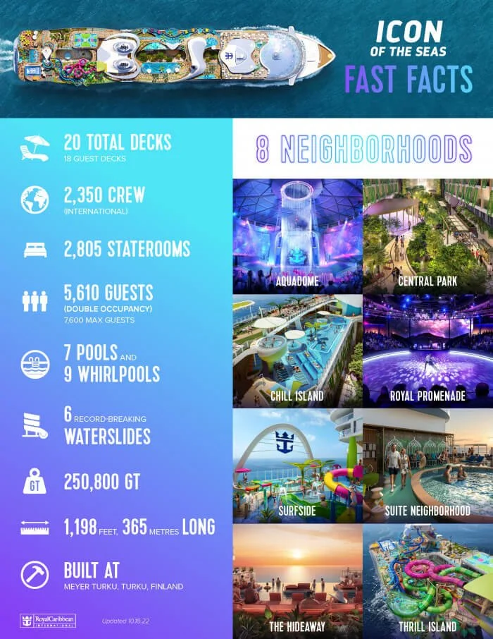 Icon of the Seas Fast Facts. (image courtesy of Royal Caribbean)